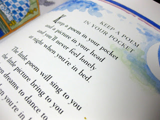 Bobbi Katz’s Pocket Poems is full of funny poems–short ones that have silly pictures that make my kids giggle. We often stop at the dog page (go figure!) and talk about Brady when we read “The Dog Show” or “Maggy’s Dog”. I’ll say, Maggy’s dog and our dog have “friendly and waggy” tails. I’m glad that our Brady boy isn’t “vicious and grim” looking from the front. I love our happy-faced dog.